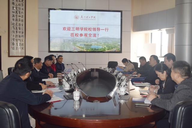 3月3日上午,校领导王乾廷、张君诚、吴龙带队赴厦门理工学院考察交流,受到了厦门理工学院校领导林进川、朱文章、吴克寿,以及该校党政办、教师工作部(人事处)、规划与品质管理处、教务处、研究生处等部门负责人的热情接待。