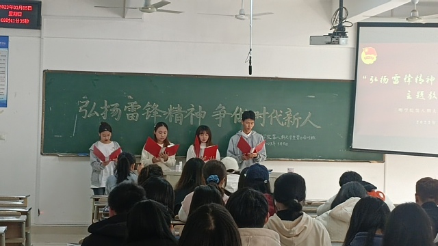 “个人与家国、小我与大我、利己与利他……雷锋曾经追求的‘活着的意义’,在新时代续写着一首首生命礼赞。”学员们以一首《雷锋精神,一座永不褪色的丰碑》,讲述了朱伯儒、徐虎、庄仕华、王顺友、杨善洲等一系列新时代活雷锋的先进事迹和精神,鼓励广大学子学雷锋、做先锋,厚植情怀,做一个对人民有用的人。
