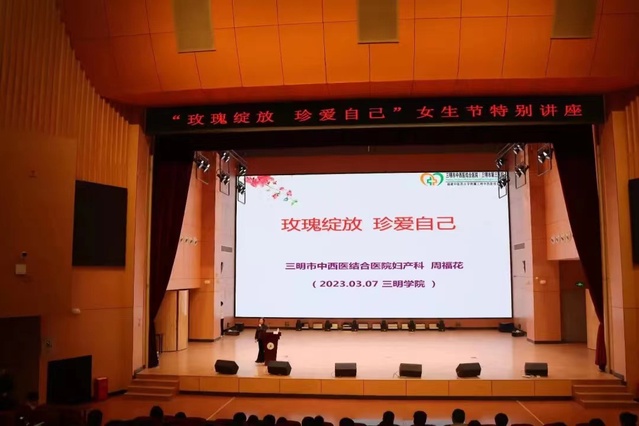 为普及女生健康知识,进一步增强女性自我保护、自我发展意识,倡导健康生活方式,在3月7日下午教育与音乐学院联合艺术与设计学院特别邀请到三明市中西结合医院妇产科主任周福花在艺术大楼演艺厅为女生们开展“玫瑰绽放,珍爱自己”女生节特别讲座。