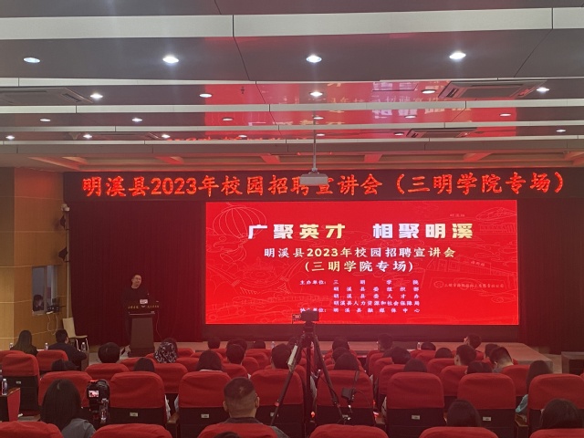 3月15日,由三明学院、明溪县委组织部、明溪县委人才办、明溪县人社局共同举办的明溪县2023年校园招聘宣讲会活动在三明学院举行。
