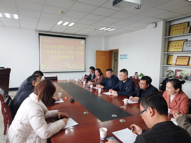 3月18日上午,调研组同井冈山大学马克思主义学院党委书记叶丹、副院长石劲松等人一同来到武汉理工大学马克思主义学院调研学习。武汉理工大学马克思主义学院院长朱喆、副院长权宗田和相关负责人出席了座谈会。朱喆院长代表武汉理工大学马克思主义学院对调研组一行的到来表示热烈欢迎,并分享了学院的相关工作经验和成效。三校马院就高校马院建设、跨校合作交流、思政教育、人才引进与培养、高水平论文的发表、学科实验室建设、专业建设、第五届中国红色文化传承与创新发展全国学术研讨会召开等进行了深入交流。