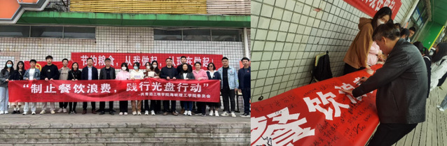 “一次签名活动”。学院组织师生在南区食堂进行了“光盘行动”签名活动。在志愿者的积极动员下,越来越多的同学在“制止餐饮浪费,践行光盘行动”条幅上签字,表达对“光盘行动”的决心。