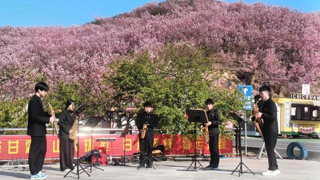 为帮助地方旅游产业引流,文化赋能,同时提升高校协同创新能力,教育与音乐学院音乐学专业学生党支部为景区设计了新颖的演艺节目,增强游客体验,丰富景区文化,让更多人感受文旅地方特色。演出团体在樱花美食广场进行直播表演,积极调动现场氛围,赢得了当时在场观众的热烈掌声。