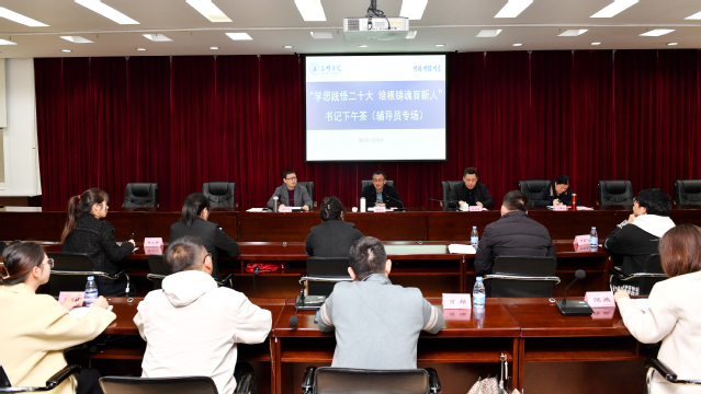 3月29日下午,三明学院“学思践悟二十大 培根铸魂育新人”书记下午茶(辅导员专场)座谈会在行政八楼会议室举行。校党委书记赖锦隆出席活动。