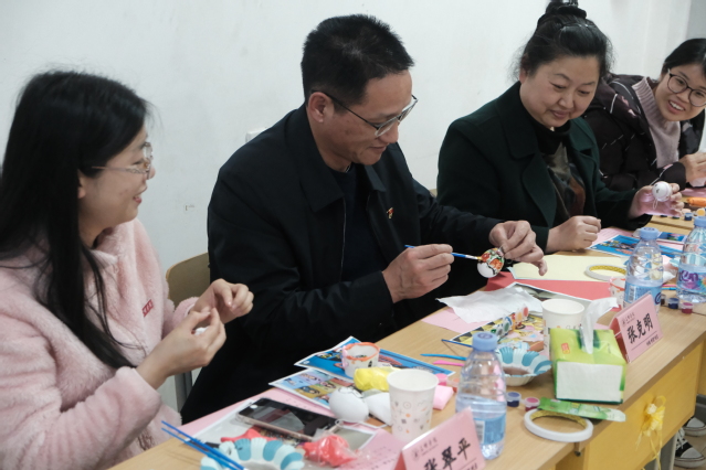 同学们现场还和老师们用彩蛋和黏土共同创作了许多有民族特色和童年回忆的手工小摆件。20物联网的余俊同学说:“这是一次特殊意义的手工制作,与少数民族的同学们一起,让我感觉各民族在中华民族大家庭中像石榴籽一样紧紧抱在一起。”现场气氛热烈,师生们共同完成了16幅色彩丰富、做工精美的手工作品,收获满满。