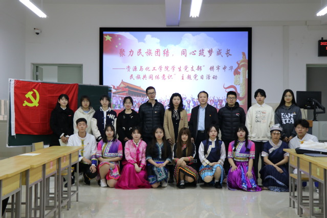 为进一步铸牢中华民族共同体意识,加强各民族交往交流交融,发挥党员在推动民族团结工作中的先锋模范作用,资源与化工学院四个学生党支部于2023年3月29日下午在工科楼B401联合开展“铸牢中华民族共同体意识”主题党日活动,学院党委书记、学院党委副书记、学生支部书记、全体学生党员及少数民族学生代表参加。