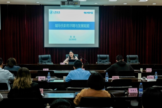 为促进辅导员队伍专业化建设,帮助辅导员明确职称晋升通道和职业发展方向,4月3日上午,学生处特邀校人事处处长陈皓于行政楼八楼会议室开展《辅导员职称评聘与发展赋能》主题讲座,全体辅导员参加了本次讲座。