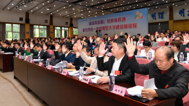 大会最后号召全体教职工发扬斗争精神,在矛盾冲突面前迎难而上,在危机困难面前挺身而出,在歪风邪气面前敢于坚决斗争,越是艰险越向前;增强竞争意识,在思想淬炼、政治历练、实践锻炼中壮筋骨,在复杂矛盾、严峻形势中长才干,不断提高高质量发展的硬实力、强本领;拿出奋争的拼劲,只争朝夕、全力而为,力争上游、奋进一流,凝心聚力推进一流应用型高校建设不断开创新局面、取得新进步!