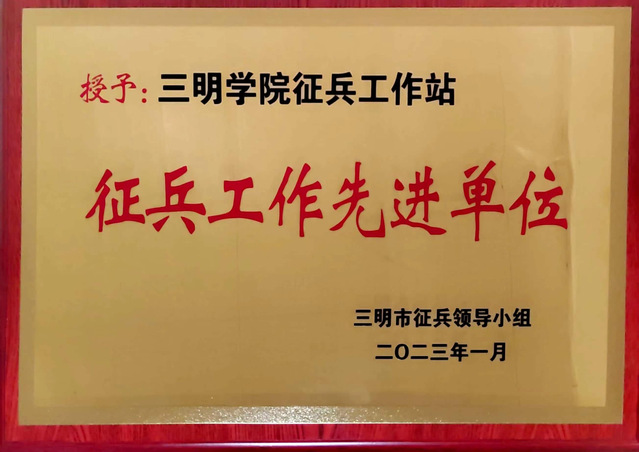 近日,三明学院征兵工作站荣获“2022年度三明市征兵工作先进单位”荣誉称号,连续两年获此殊荣。