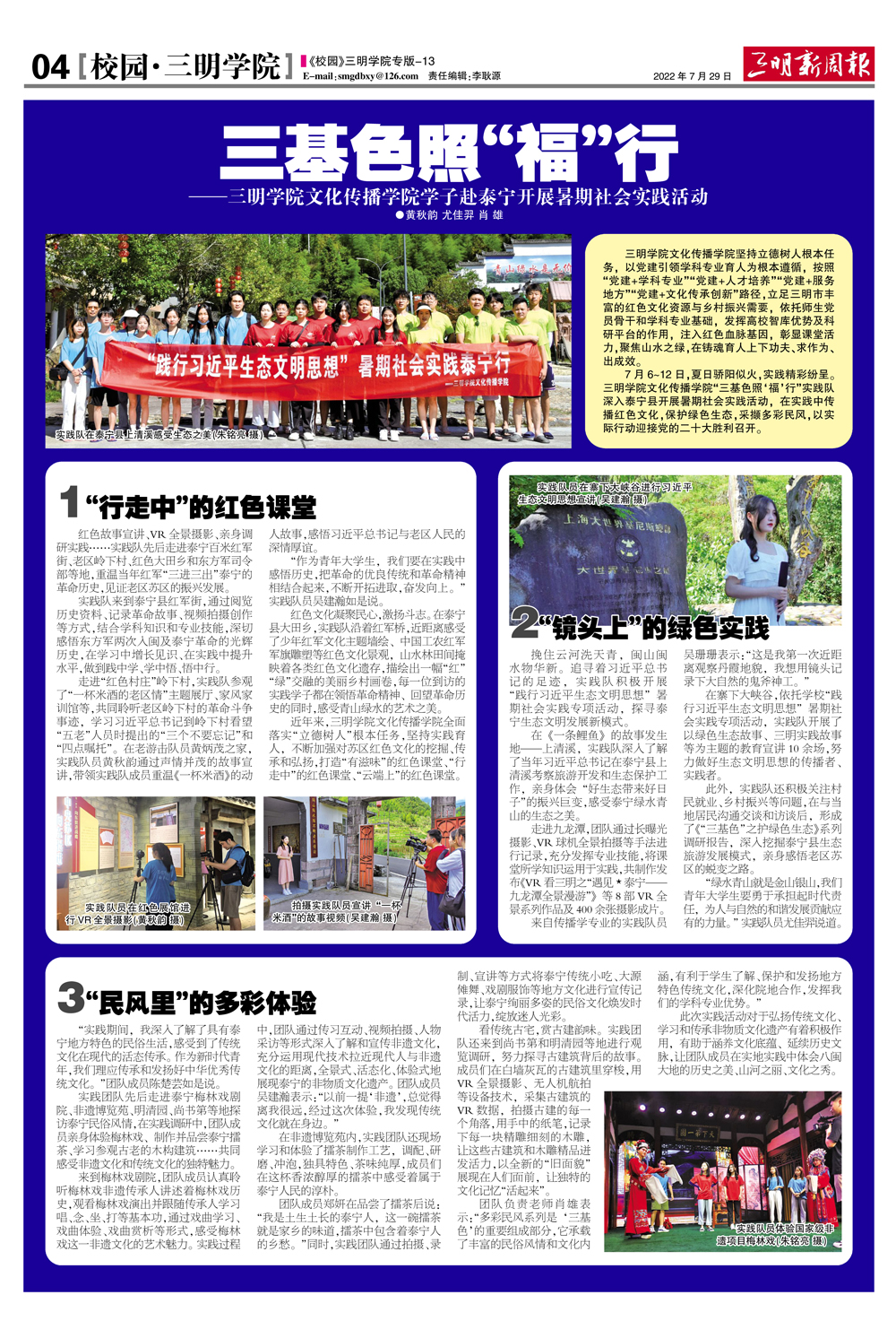 【三明新周报】三基色照“福”行——三明学院文化传播学院学子赴泰宁开展暑假社会实践活动