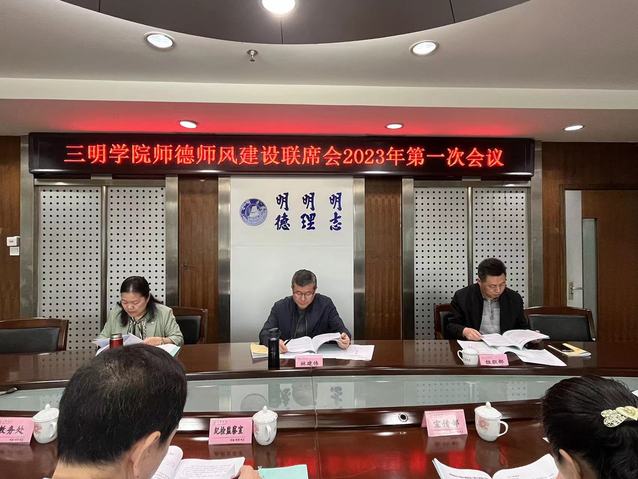 4月26日上午,三明学院师德师风建设联席会2023年第一次会议在行政楼五楼会议室召开,部署我校师德师风建设工作。校党委委员、副校长林建伟出席会议,人事处(教师工作部)、党委组织部、党委宣传部、纪检监察室、党委统战部、教务处、科技处(社科处)、校工会负责人参加会议。