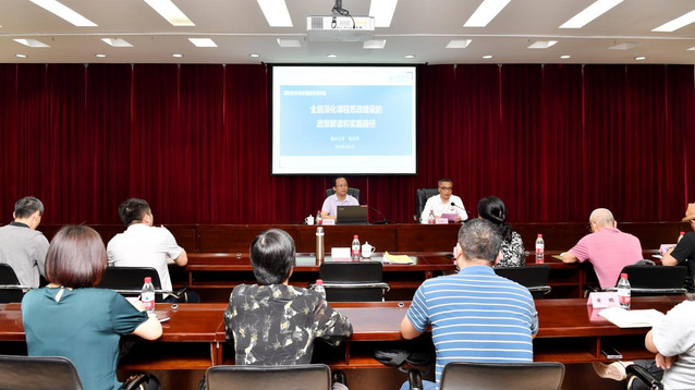 为进一步加快专业结构调整,提升专业内涵建设水平,提高立德树人成效,5月6日下午,教务处在行政楼八楼会议室举办专业改造升级之课程思政高质量建设培训会。会议由张君诚副校长主持,各二级学院教学副院长、专业带头人、专业骨干教师以及教务处全体成员共计百余人参加。