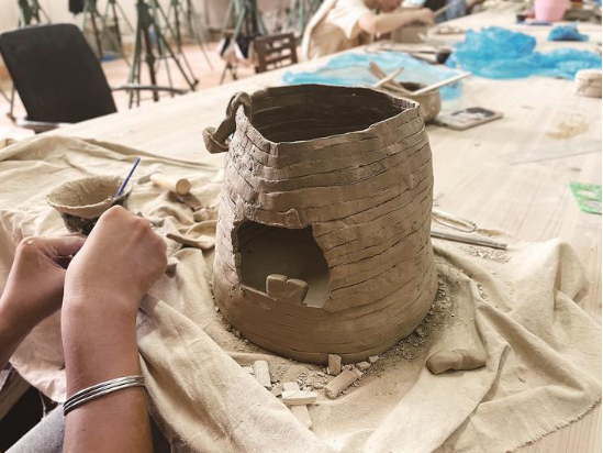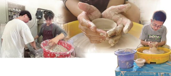 浊水沉土,素胚雕饰,泥沙涅槃终成陶。在工作室里,学生们埋头制作,时钟、人像、餐具、花瓶……各种奇思妙想由他们的脑海中跃然“手”上,他们的热爱和坚持,正在书写着年轻一代的工艺之美。