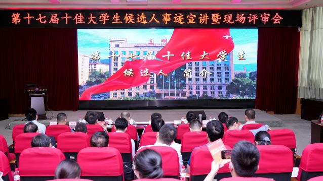 5月23日上午,三明学院第十七届十佳大学生候选人事迹宣讲暨现场评审会在图书馆学术报告厅举行。校党委廖景榕副书记,党政办、组织部、宣传部、学生处、教务处、保卫处、校团委负责人,各二级学院党委书记、辅导员代表、学生代表参加会议。