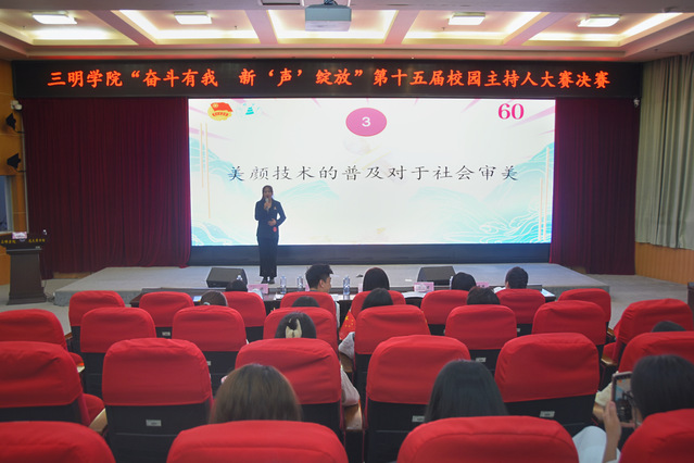 5月25日晚,由校团委主办,文化传播学院团委承办的三明学院第十五届校园主持人大赛决赛于图书馆学术报告厅顺利举行。经过层层选拔,12名参赛选手一路过关斩将,顺利进入本次决赛。马岩老师、蔡小斌老师、朱小珺老师等共同出席担任本场比赛的评委。
