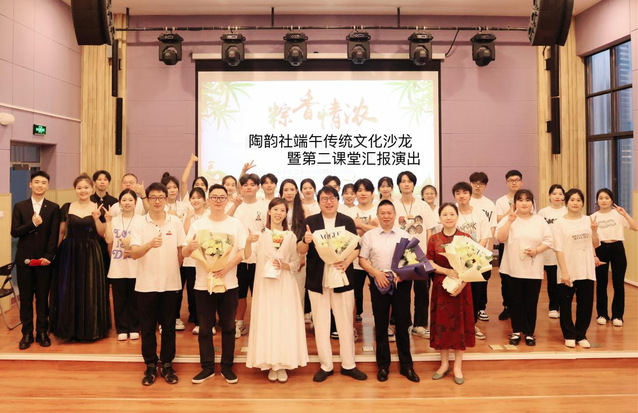 活动中,赵亮用通俗易懂的语言,全面生动地向大家科普了陶埙陶笛文化知识,使参与本次活动的老师同学们对陶埙陶笛文化传承有了进一步的解。他倾情演奏的埙曲《秋韵》和笛曲《山丹丹花开红艳艳》展现了高亢激昂的旋律、炉火纯青的演绎,引人入胜,将沙龙的气氛推向高潮。专家们也各自阐述对陶埙陶笛及中华传统文化的独到见解和深刻内涵。教育与音乐学院专业教师林心河紧扣端午节主题带领陶韵社的同学演奏原创作品埙与陶笛重奏《郢风》。