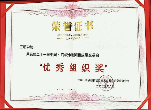 近日,从中国·海峡创新项目成果交易会组委会办公室获悉,三明学院荣获第二十一届中国·海峡创新项目成果交易会(简称“6·18”)“优秀组织奖”。