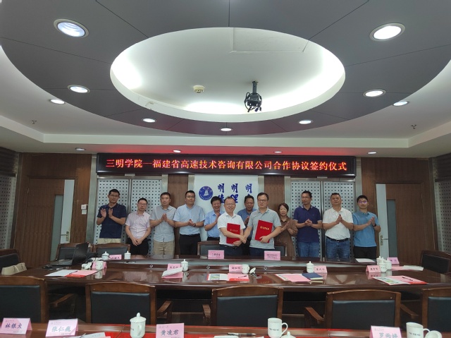 7月25日上午,三明学院建筑工程学院与福建省高速技术咨询有限公司在行政楼五楼会议室举行了合作签约仪式。福建省高速技术咨询有限公司书记、董事长杨杰,三明学院党委委员、副校长谢松明出席会议。