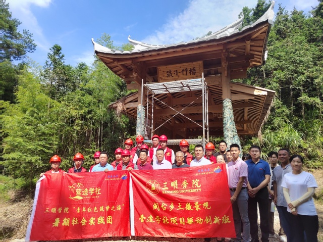 在明溪县梓口坊村实践现场,廖景榕认真听取活动开展情况介绍,与师生们交流驻村实践生活感受,并对闽台乡土微景观营造学社项目驱动创新班的《梧竹小筑》落地作品给予充分肯定。他表示,暑期社会实践是大学生接触社会、了解社会、服务社会的有效形式,希望同学们继续发扬“自找苦吃”的精神,扎根乡村大地,将专业所学与躬身实践结合起来,努力在社会实践中受教育、长才干、作贡献。