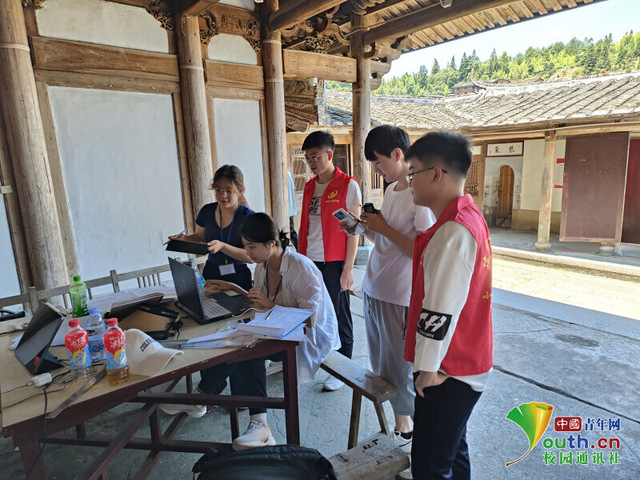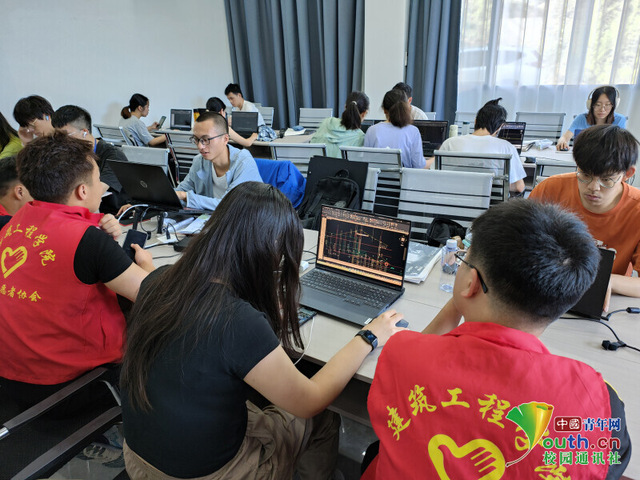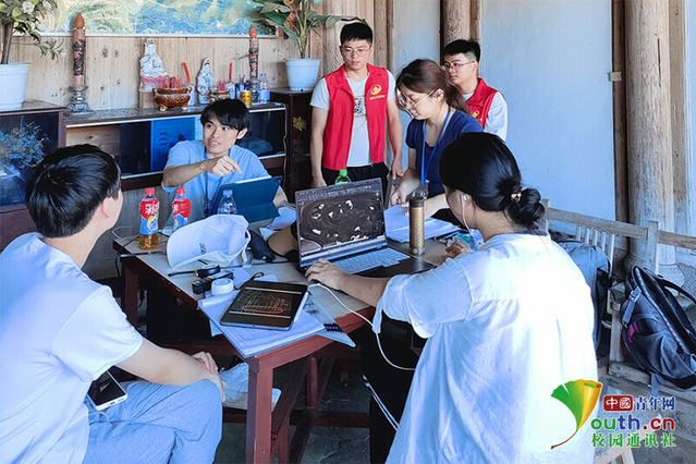 图为实践队成员对测绘的数据进行整理。中国青年网通讯员 李雯 供图