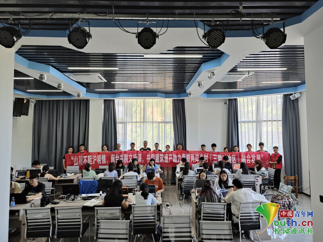 图为实践队成员与同济大学团队在绘图室交流学习。中国青年网通讯员 李雯 供图