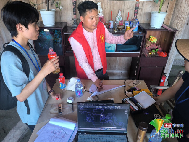 图为同济大学团队为实践队成员讲解绘图知识。中国青年网通讯员 李雯 供图