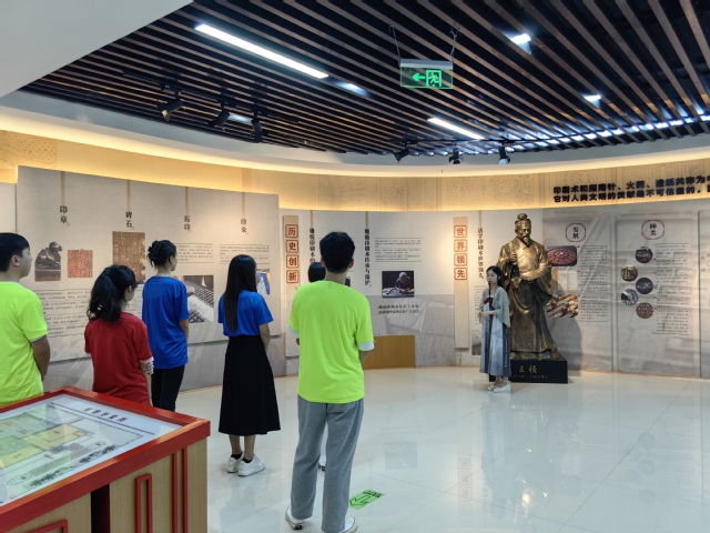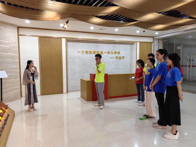 在世界客属文化交流中心,实践队成员先后走访“客家三馆”,深入了解客家民系的起源和发展历程,领悟非遗文化的魅力。“玉扣纸是福建竹纸的重要代表,色泽温润如玉,制作工艺精密复杂。”伴随讲解员的解说,玉扣纸的历史由来、制作工序、发展过程如画卷般铺开,向实践队成员娓娓道来,并借助VR技术还原玉扣纸制作过程,让人身临其境,感慨万分。成员们纷纷表示要学好学科专业知识,将其转化为加强历史印迹保护、繁荣非遗文化的不竭动力,着力阐释好中华传统文化的精神标识和当代价值。
