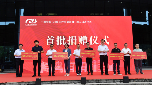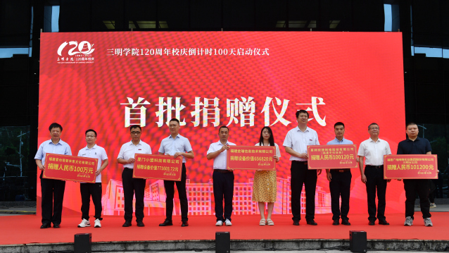 启动仪式上,还发布了三明学院120周年校庆LOGO,上线了三明学院“云校庆”专题网站,点亮了校友地图,举行了首批捐赠仪式,捐赠代表作了致辞。