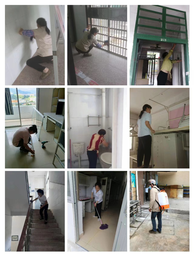 为了新学期提供更舒心的学习环境,用他们的认真,着眼于每一个细微之处…为新学期提供更加整洁的生活环境,她们用行动诠释“阿姨“与”大叔”的那份爱…