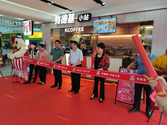 在欢快喜庆的礼炮声中,在场领导和嘉宾代表共同为肯德基小站举行剪彩仪式。肯德基小站落户我校,丰富校园小吃品类,满足师生多样化、多层次的消费需求,带动更多知名餐饮品牌的入驻,更好的为我校师生服务。
