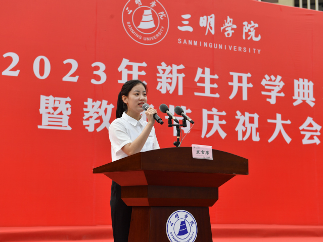 在师生代表发言中,福建省优秀教师、马克思主义学院欧阳秀敏博士以一个学姐和一个老师的身份讲述自己的心路历程,勉励新教师、新生要传承闽师精神,要学会悦纳不足,要不断提升自我,认真学习、脚踏实地、自信自强、踔厉奋发,努力成就最好的自己。