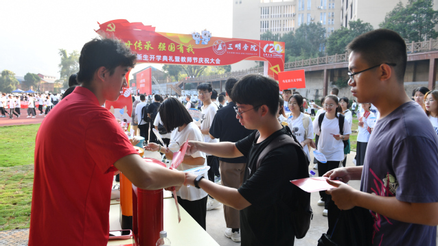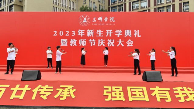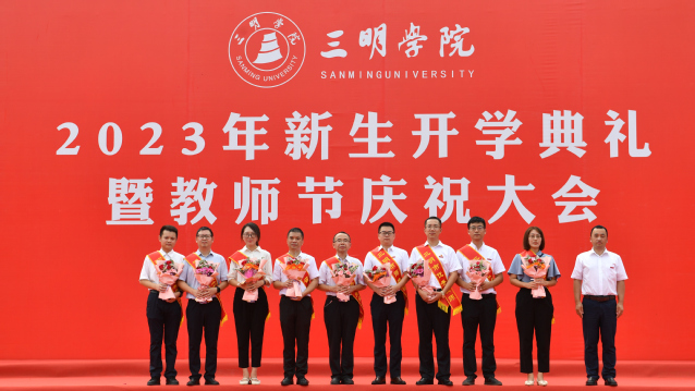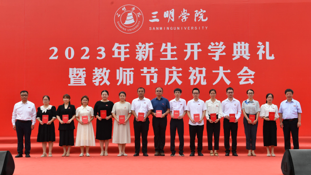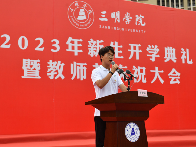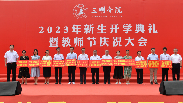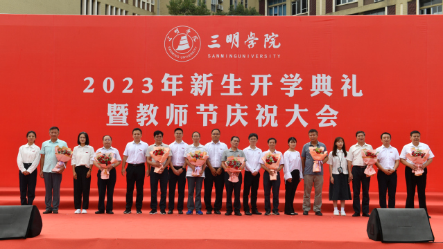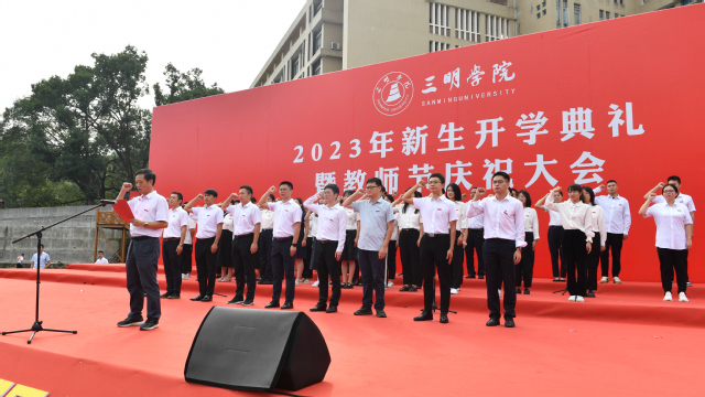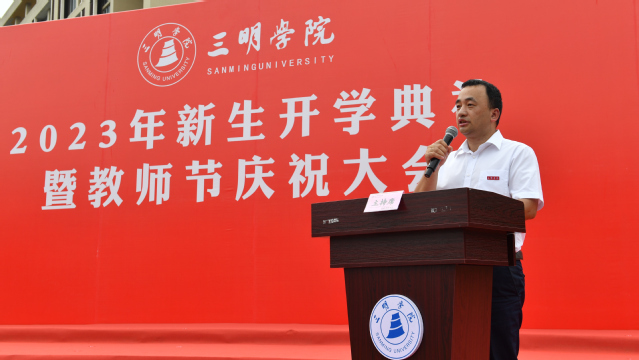 又是一年秋景至,最是学子憧憬时。9月11日上午,三明学院在北区田径场举行2023级新生开学典礼暨教师节庆祝大会。校领导赖锦隆、王乾廷、廖景榕、张君诚、吴龙、谢松明、林建伟,台湾岭东科技大学副校长杨永列,台湾中国科技大学教务长陈哲炯,校机关教辅部门负责人,二级学院党政负责人、副书记和新生辅导员,离退休教师代表、师生代表以及2023级全体新生等共计4000余人参加典礼。典礼由党委副书记廖景榕主持。