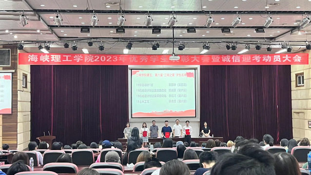 为推进学习贯彻习近平新时代中国特色社会主义思想主题教育走深走实走心,表彰优秀学子典型,凝聚青春奋进力量,日前,海峡理工学院在行政副楼学术报告厅举行2023年优秀学生表彰大会暨诚信迎考动员大会。院党委书记林光初、院党委副书记陈勇、教学科研科科长余金凤、教务员江琳及全体辅导员出席会议,学生骨干、受表彰学生代表及全体2022级新生共400余人参加会议。