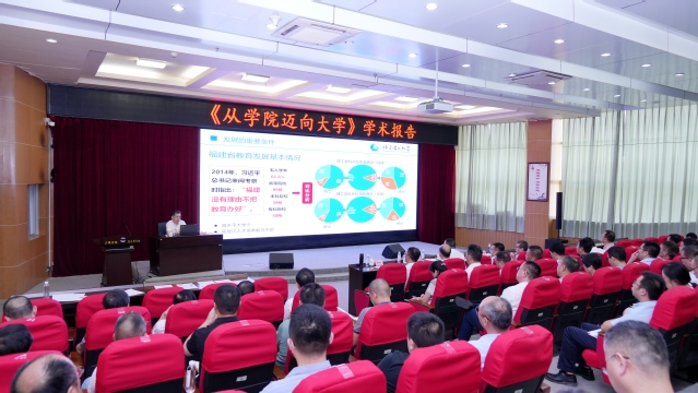 报告会上,吴仁华教授以《从学院迈向大学》为题,阐释了“大学”的标准条件及内涵,并从发展的基础条件、动态能力及经验体会分析了高等学校的发展路径。