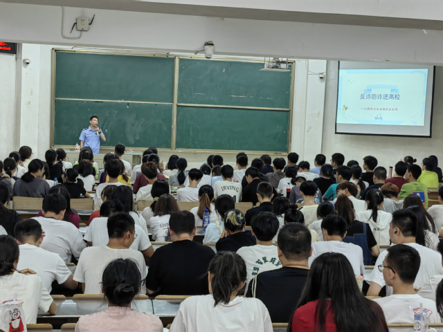 吴庆文副所长围绕从“电信网络诈骗有哪些常见套路?”“同学们容易中招的有哪些陷阱?”“被骗后应该怎么办?”等问题出发,通过部分案例为典型,以通俗易懂、喜闻乐见的方式进行了全面细致讲解了犯罪分子的作案方式、常用套路以及防范方法。会上,他告诫在座师生,要增强防范意识,不要被假象迷惑,不要贪图小便宜,遇到各种骗局做到“不理睬、不转账、不轻信、不汇款”遇到问题及时拨打官方电话,增强自身安全防范意识,提高识骗防骗能力。