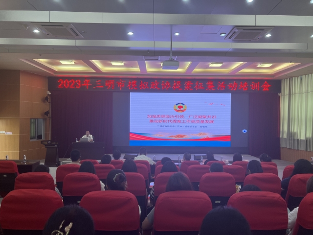 为深入学习宣传贯彻党的二十大精神,引导学生了解并有序参与社会主义民主实践,9月15日下午,三明学院联合三明市政协社法委、团市委在三明学院逸夫图书馆四楼共同举办三明市模拟政协提案征集活动培训会。三明市政协社法委主任袁富力、三明市政协常委、福建新宇电子有限公司董事长何敏雄出席会议,三明学院模拟政协协会成员、青年学生代表等153人参加培训会。