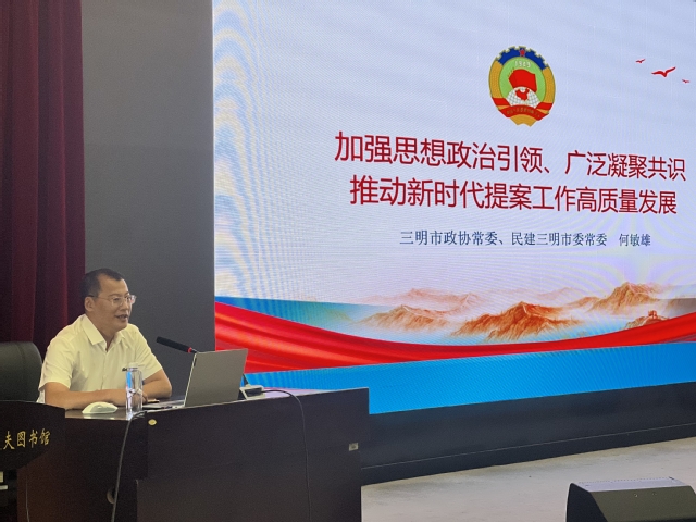 培训会上,市政协常委、福建新宇电子有限公司董事长何敏雄同志就政协提案基本知识、规范性要求等进行讲解,结合案例分析,对青少年模拟政协提案选题方向、调查研究、政策分析、撰写技巧等进行辅导,帮助学员进一步增强对人民政协的认知,提升参与模拟政协活动的专业能力。通过讲座,在场师生充分认识到了开展学生模拟政协提案征集活动的重要性,极大地激发了大学生撰写模拟政协提案的热情和信心。