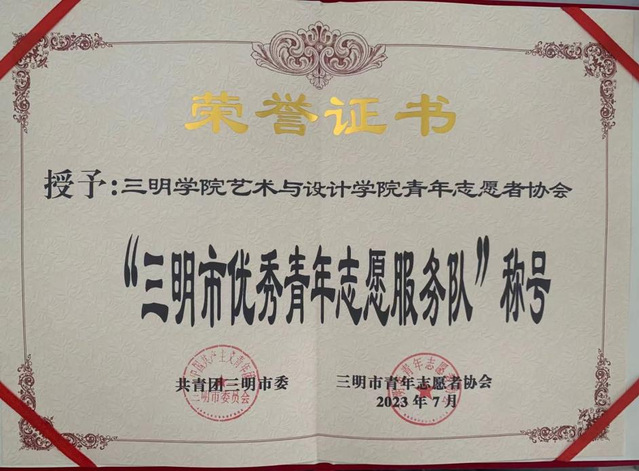 近日,艺术与设计学院志愿服务中心荣获“三明市优秀青年志愿服务队”称号。学院“繁星蓝丝带”志愿服务中心自成立以来,始终秉持“奉献,友爱,互助,进步”的志愿服务理念,用行动践行初心使命,展现青春力量。