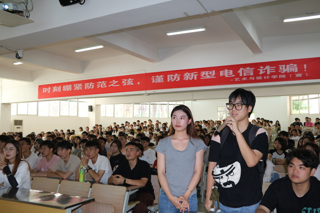 首先,民警通过防诈视频和互动问答的形式图文并貌地展示了我国各年龄段受诈骗的普遍程度,通过真实案例深入讲解了裸聊、快递赔付、网络交易等相关诈骗类型和途经,让新生们全方面深入了解当下的诈骗手段,拓展了新生们对于防范诈骗的认识,提高防诈意识。