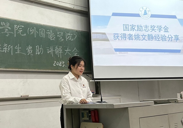 宣讲会上,海外学院(外国语学院)资助工作指导教师赖丽莹从国家奖学金、国家励志奖学金、国家助学贷款、师范生公费教育、国家助学金、退役士兵教育资助、临时困难补助、基层就业学费补偿贷款代偿应征入伍义务兵役国家资助直招士官等种类齐全的各项资助项目等方面详细地介绍了学校资助政策的内容,并提醒同学们努力做到以下三点:一是不要抱有对家庭困难学生的歧视;二是诚信申报,把机会留给真正需要帮助的同学;三是提高防范意识,警惕网络诈骗,不要轻易泄露个人信息。随后,国家励志奖学金代表刘旋、姚文静等同学从学生工作、科技竞赛、社会实践、学习规划等方面分享了自己的校园成长经历,展现了新时代青年奋发向上的形象,激励广大新生不畏艰苦、争优争先。