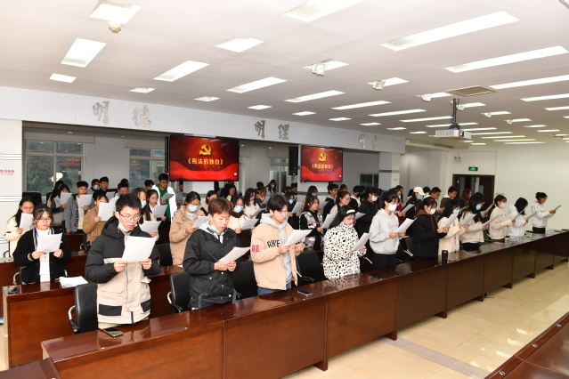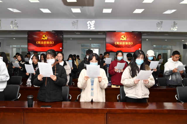 三明学院法律援助协会组织各学院学生骨干在行政楼八楼会议室开展“宪法晨读”活动,全体参加活动的同学用共同诵读宪法的方式认真学习了宪法,在诵读中体会到宪法的庄严与神圣,在诵读中深刻认识到宪法是治国安邦的总章程,是公民权利的保障书。作为宪法宣传周系列活动之一,“宪法晨读”不仅进一步彰显了宪法权威,也让学子们在庄严的仪式中更加坚定了宪法信仰、法治信仰。