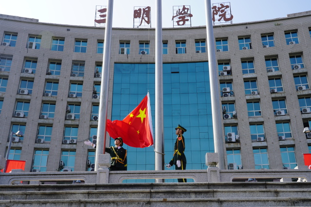 10月1日上午,三明学院在行政楼广场隆重举行升国旗仪式,庆祝新中国74周年华诞。校党委赖锦隆书记,学生处、校团委负责人以及二级学院师生代表参加升旗仪式。