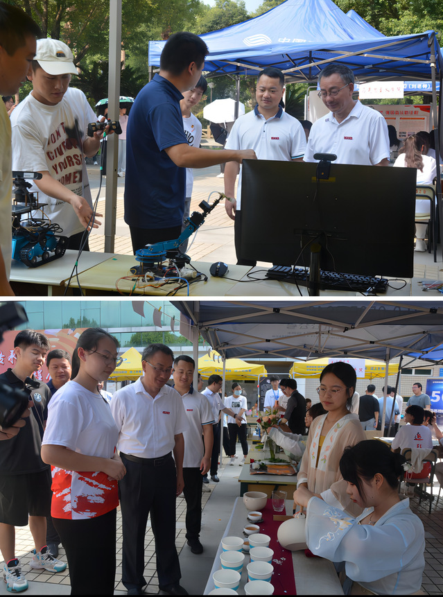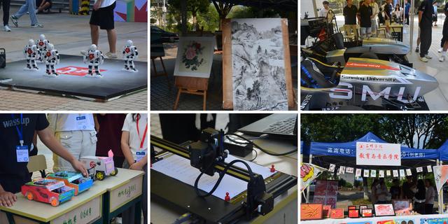 “我和我的祖国,一刻也不能分割......”伴随着深情悠扬的歌声,舞蹈机器人在行政附楼前翩翩起舞。酷炫的舞蹈展示中,引得参展师生连连惊呼,身临其境地感受科技的魅力;五彩斑斓的手绘风筝抒画着对祖国和学校的热爱;惟妙惟肖的绘画作品展示出对国家繁荣昌盛的自豪;剪纸、篆刻镌刻着学子们心中祖国的大好河山......精彩的互动展示吸引同学们纷纷驻足观看,现场不时爆发出热烈的掌声。