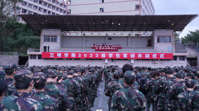 10月10日上午,三明学院2023级军训动员大会在运动场上举行。校领导,军训大队教官代表出席大会,校党委副书记廖景榕主持大会。