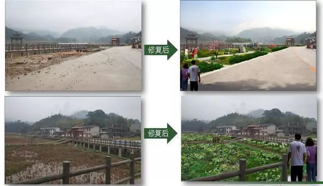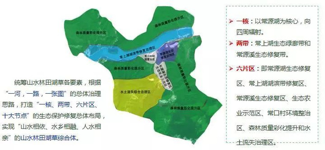 该项目按照“保护优先、自然修复、工程辅助”的原则,以“一核、两带、六片百年区、多节点”治理目标,坚持治山、治土、治水、治穷同步推进,同乡村振兴有机结合,从山水林田湖草的整体性和系统性出发,统筹山、水、林、田、湖、村六大要素,实施废弃砂场治理、五水共治、恢复生物多样性等工程,打造“山水相依、城水相融、人水相亲”的山水林田湖草综合体,构建“百姓富、生态美”的新常口,探索“山水林田湖+生态提升+产业振兴”发展路径,将“绿水青山”转化为“金山银山”。