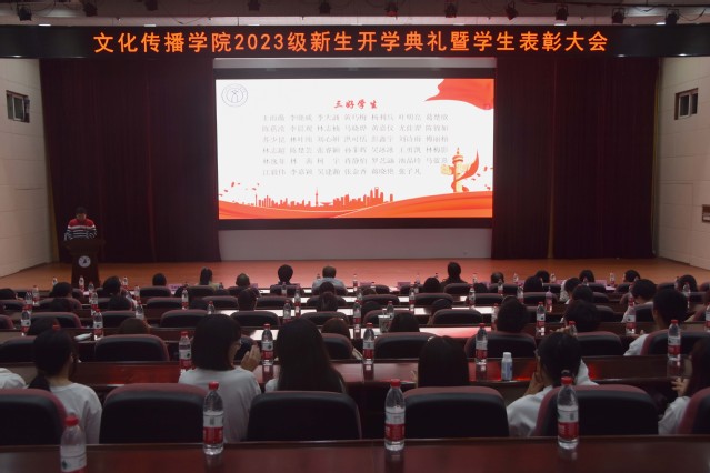 十月秋浓,奋楫扬帆。10月13日,三明学院文化传播学院2023级新生开学典礼暨学生表彰大会在三明学院行政副楼学术报告厅隆重举行。三明学院文化传播学院院领导、专业带头人、系主任、团委书记、辅导员、学生代表、2023级全体新生参加此次典礼,典礼由文化传播学院党委副书记范桂英主持。