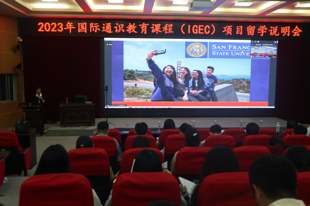 11月8日,三明学院对外合作与交流处、海外学院(外国语学院)在图书馆报告厅举办了2023年国际通识教育课程(IGEC)项目留学说明会。本次说明会由美国旧金山州立大学的国际学生招生专员 Michelle Hong老师(线上) 、美国天普大学中国办公室陈琳老师主讲,对外合作与交流处朱悦副处长、海外学院(外国语学院)黄葵副院长出席,2023级国际课程项目全体新生参加。