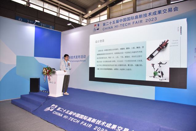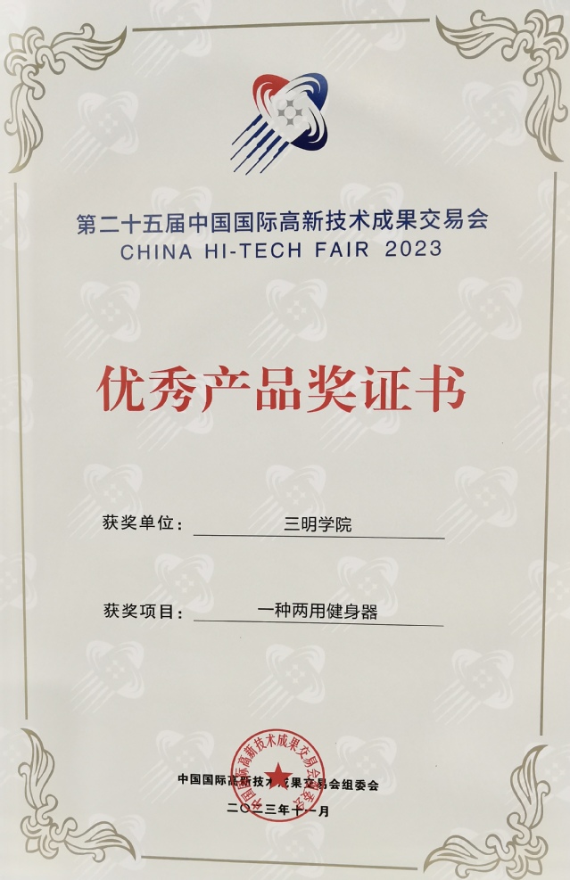 第二十五届中国国际高新技术成果交易会于11月19日落下帷幕。我校艺术与设计学院王林老师团队的发明专利《一种两用健身器》荣获“优秀产品奖”。