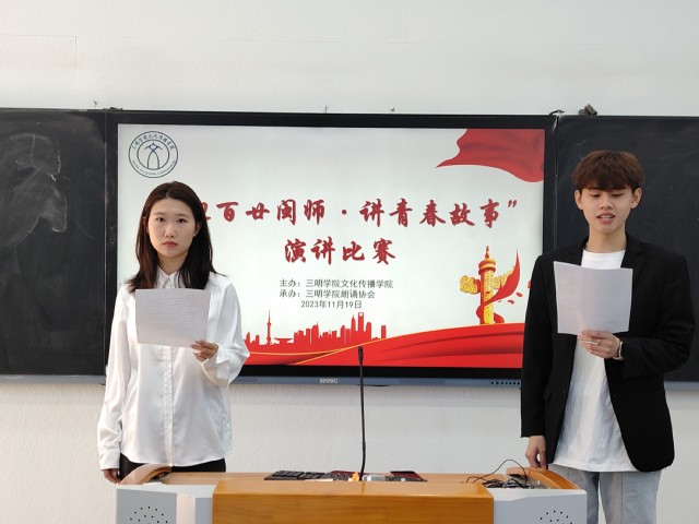百廿风华正青春,薪火相延向未来。为庆祝三明学院建校一百二十周年,抒发学生爱校荣校情怀,营造浓厚校庆氛围,11月19日下午,“迎百廿闽师,讲青春故事”主题演讲比赛在外语楼智慧教室举行,本次比赛由三明学院文化传播学院主办,三明学院朗诵协会承办。