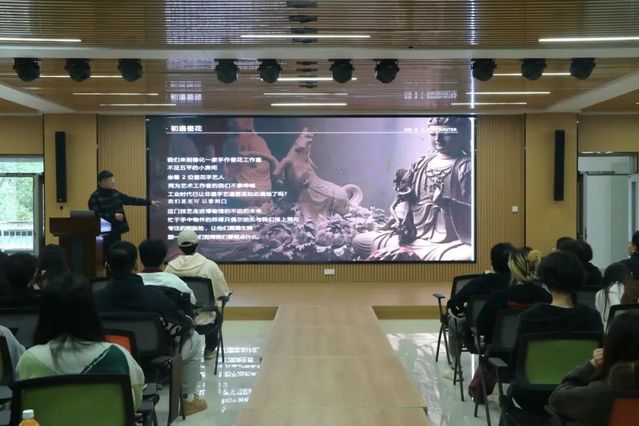 公晓泉以自己的企业品牌为例,讲解了如何更好地将非遗文化融入艺术设计,在实践的过程中对传统非遗进行创造性转化、创新型发展,涵养匠心精神。此外,公晓泉介绍了自己从学院学生会团委副书记到创业者转变的过程。他从自身经历出发,分享了自己在校期间的专业学习、学生工作等经历,勉励同学们珍惜大学时光、积极参加各类学生工作和活动。